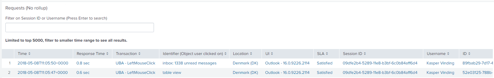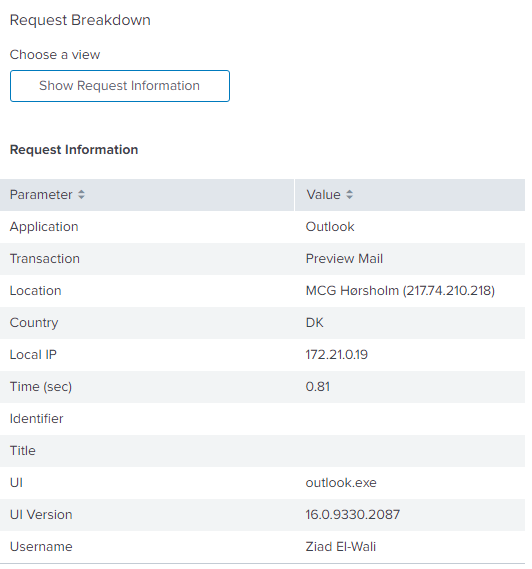 If you wish to see additional information about a request you can break it down by clicking a row in the "Request" table.
