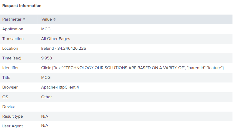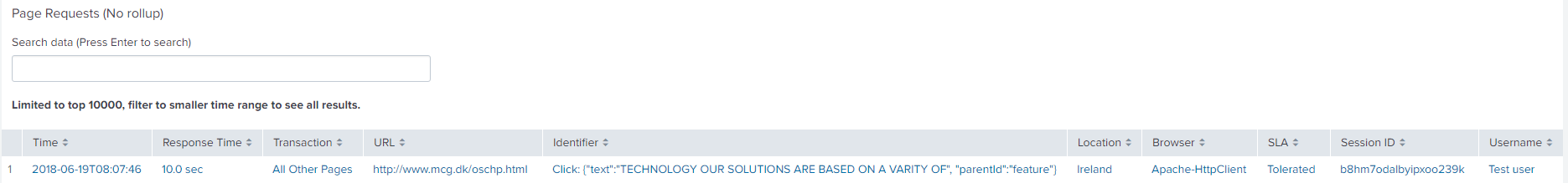 If you wish to see additional information about a page request you can break it down by clicking a row in the "Page Request" table.