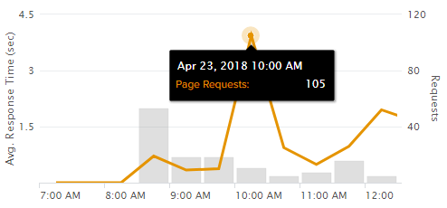 Hover the mouse over one of the yellow line to see more detailed information about the request count and date/time.